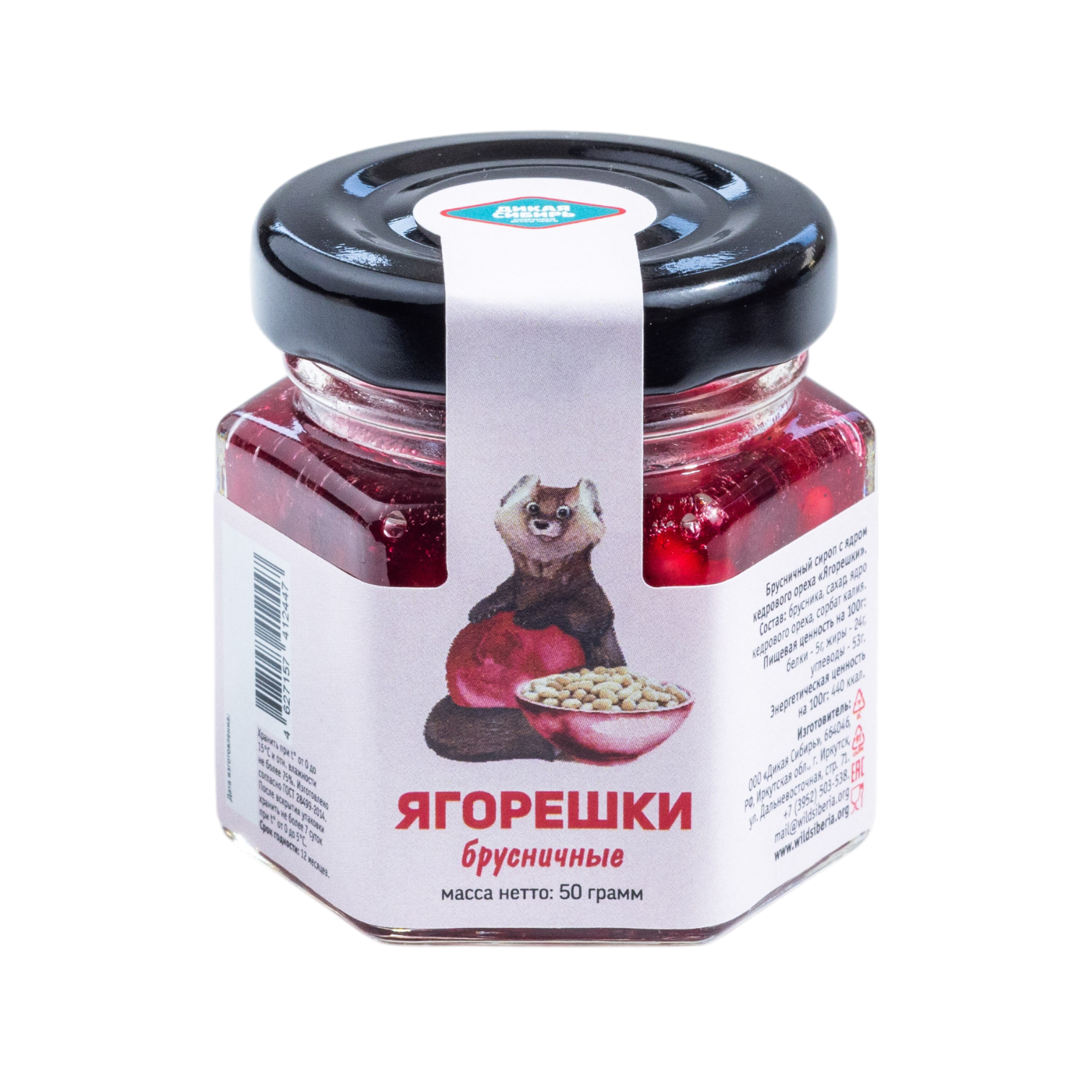 Состав: брусничное пюре «Дикая Сибирь», ядро кедрового ореха, сахар, сорбат калия.
