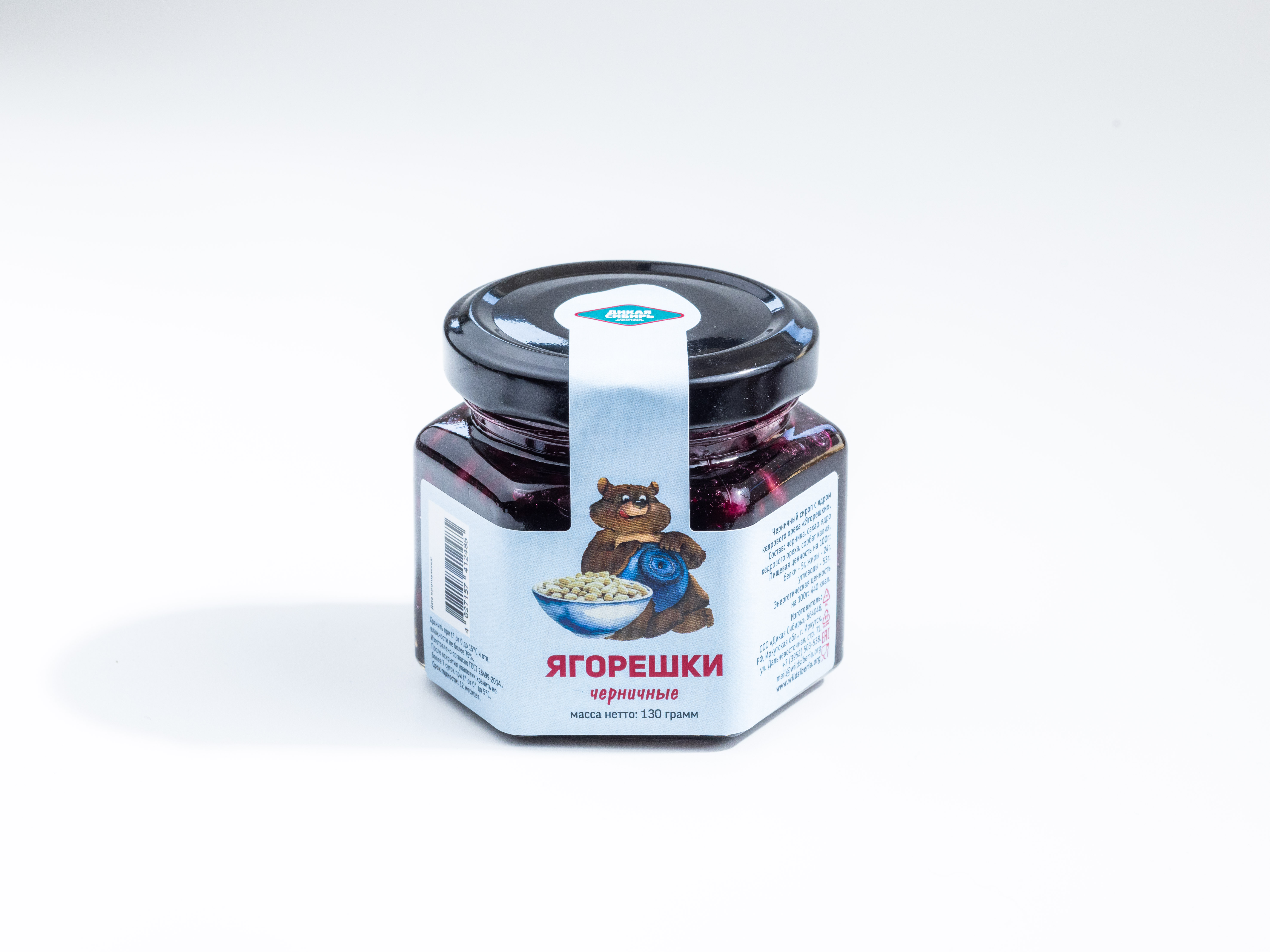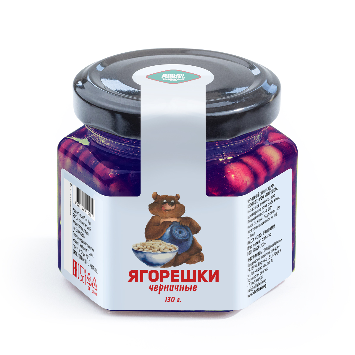 Состав: черничное пюре «Дикая Сибирь», ядро кедрового ореха, сахар, сорбат калия.