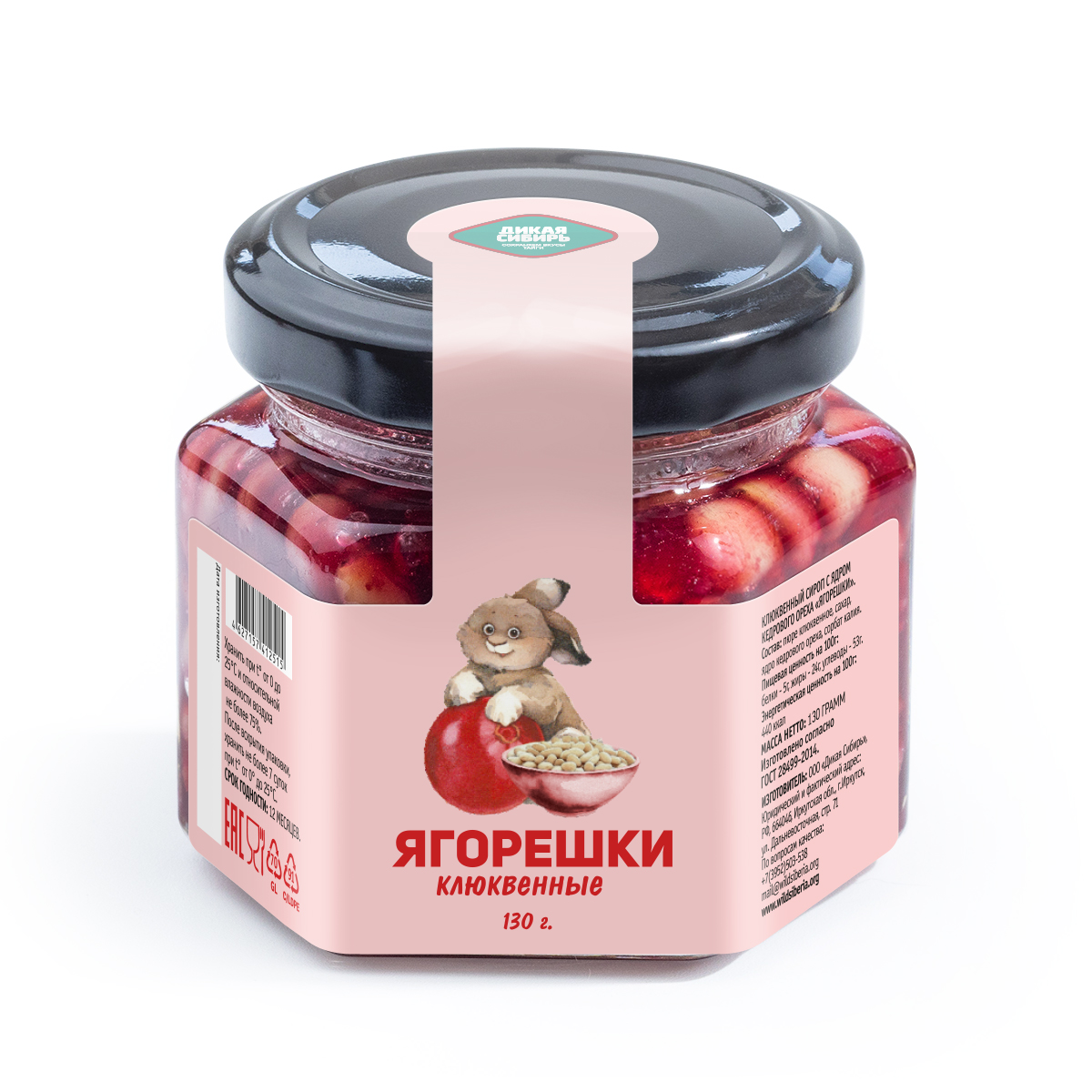 Состав: клюквенное пюре «Дикая Сибирь», ядро кедрового ореха, сахар, сорбат калия.