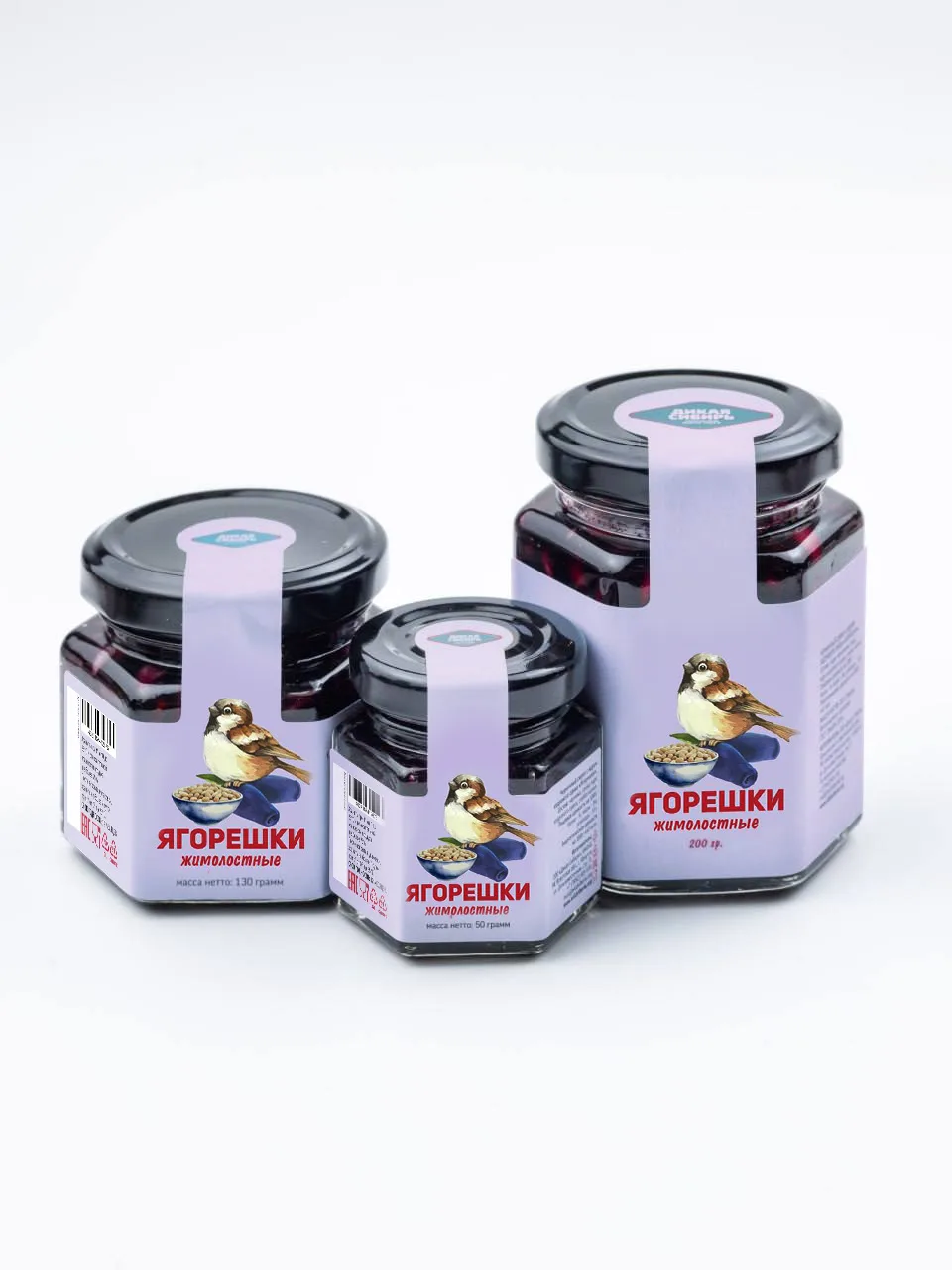 Состав: пюре из жимолости «Дикая Сибирь», ядро кедрового ореха, сахар, сорбат калия.